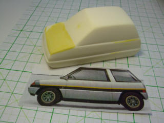 A8君との2ショットのために制作してみましょう。ノーズを延長して、ボンネットをすきっりとして、赤でも吹きましょうかねぇ?!