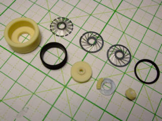 A8君はホイールの仮組と接着方法の考察を考えています。ボディカラーの調色は4色のソリッドと2色のパールで作りましたw