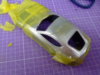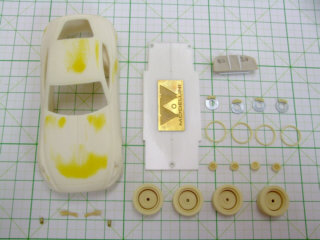 ホイールを接着して組み立てていきます。ボディはマスキングをしてシルバーメッキにペイント