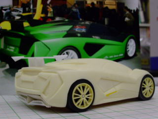 本日は完全休養日。朝からリラックスタイム、Bertone BAT11のモックアップ制作の画像をゲット。ボディとキャビンはセパレートで制作しています。