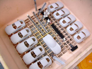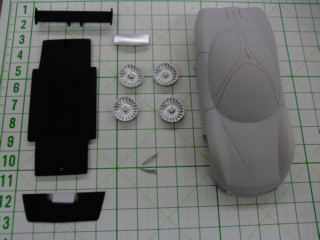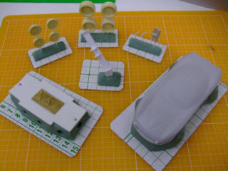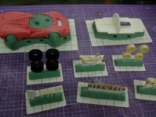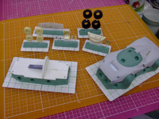 | サフを吹いて強制乾燥。 | MORAY GTもボディ以外はP完。 | Maserati A8GCSのパーツもこの通り |
