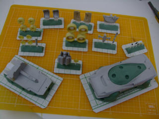 | 全てのパーツが揃った(右のパーツはエッチングにする為に、暫定でブラパンで制作しています) | ||