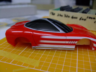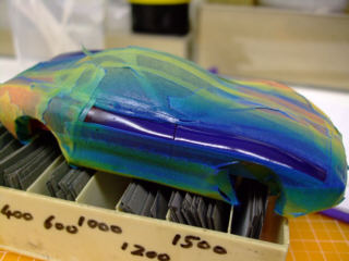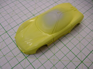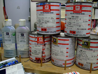 | #1000でペーパー掛けた後に水洗い。 | 下地にはレモンエロー+ホワイトを吹きます | 赤ではなくスカーレットMです |