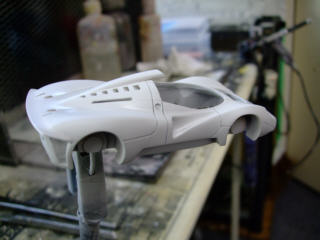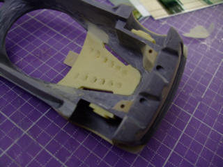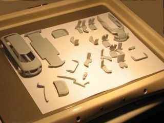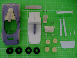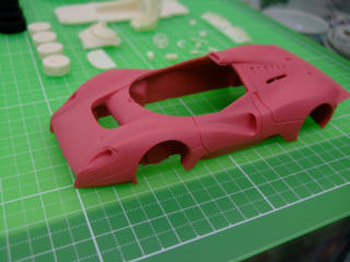 ノーマルボディをラベンダーに着色したレジンでキャストします。各種パテで盛り付けます。加工個所が一目了然になります