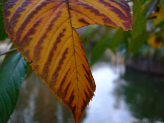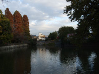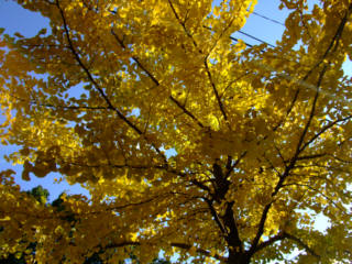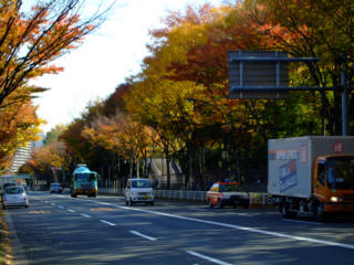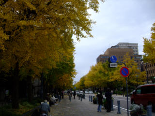 W君のスタジオの在る、越中島へ、街路樹が色づき始めています。