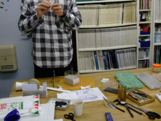 ハンズに板を買いにいきました、1カットを40円で切断してくれるので便利です。一次原型と未完成のボディケースの出来上がりです。