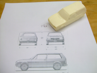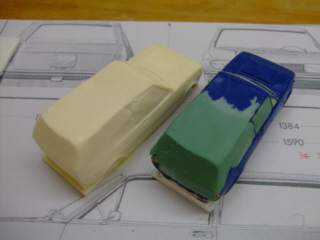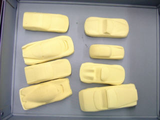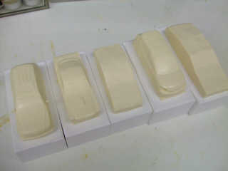 | 複合素材のボディをもう一度型に取り、抜いたのがマスターモデルの母材になります。 最初の型はこれでさようならですが、何か再利用はないものだろうか・・・。廃棄するには可哀想だよ。 |