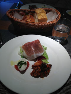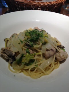 イタリアン探検隊、"Pontevita"のランチは3種の前菜、広島産生カキのパスタ、ヘーゼルナッツのケーキとエスプレッソ・・・。