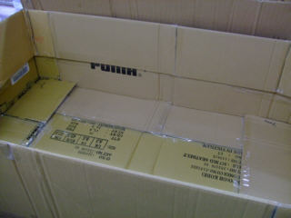 紙箱とエッチングパーツ数十セットの到着です。4車種のボディエクステリアパーツの製作です。
