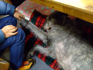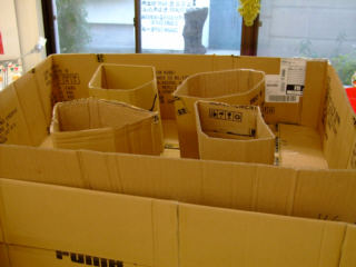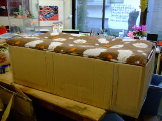 | 年末の工房清掃をしながらラウラのベットを製作しました。材料はダンボールのみ、"蜂の巣簡易工法"で温かいベットが出来ました。 | ||