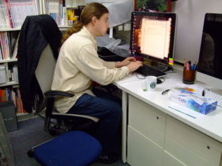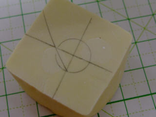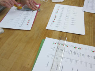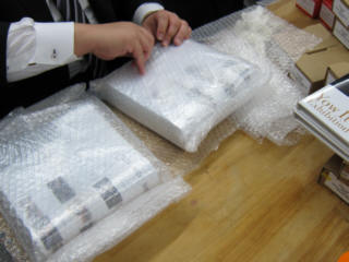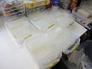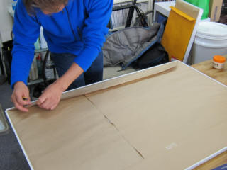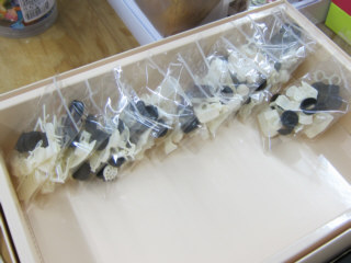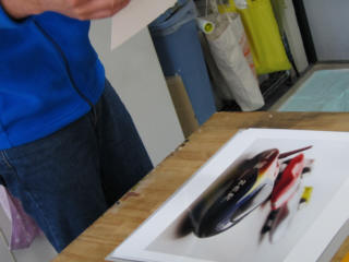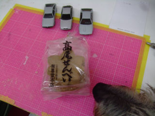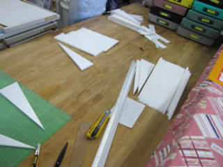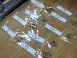 | ロナルド君に製作してもらったラベルのカッティング。 | ||