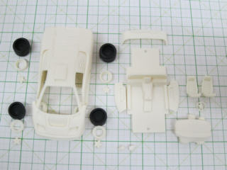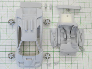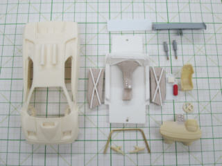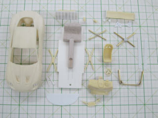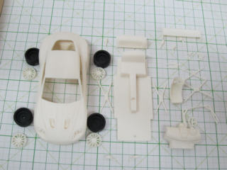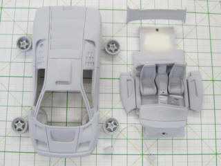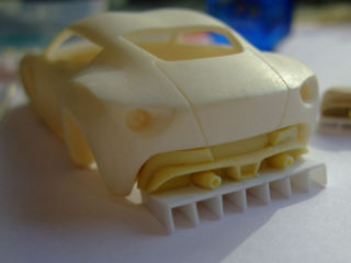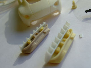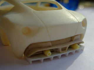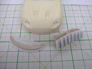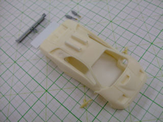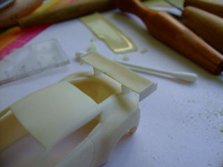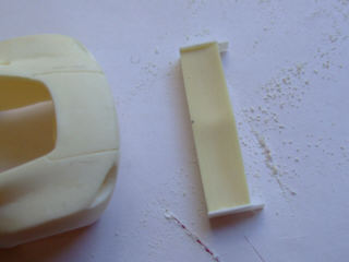 アストン・コルサのリヤウィングは3D形状なのでエッチングでは再現できないので、削りました。