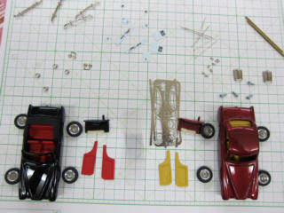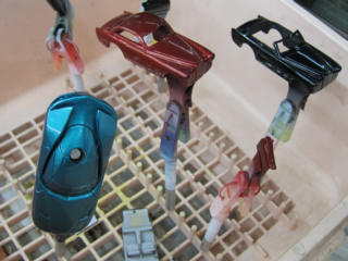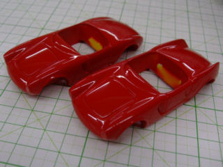 | ベルトーネやピニンファリーナを並行して作業を進めていきます、塗装さえしておけば完成までは直ぐ・・・。 新しい試みは、オレンジベースに赤を作ってみた。 |