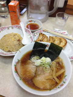 | 学大まで送迎。。。。一緒に中華三昧、定食の王道"半ちゃんラーメン"の餃子付き。 | ||