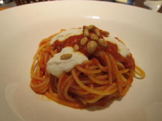 | ランチは、"PONTEVITA"メインパスタは"寒ブリとセリとカラスミ"、デザートは"バナナのタルト" | ||