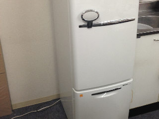 新しい冷蔵庫が工房にやってきた、デサインセンス抜群の評判の箱が今日から一緒です。