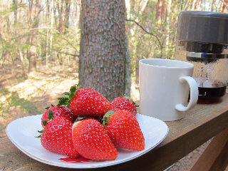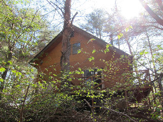 アカマツ林の中にある友人別荘宅に到着。