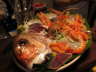 | 刺身の盛り合わせになぜにエビだけ熱入れたのか不思議の巻。 | ||