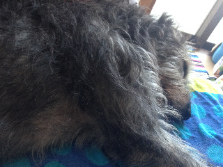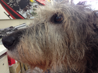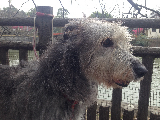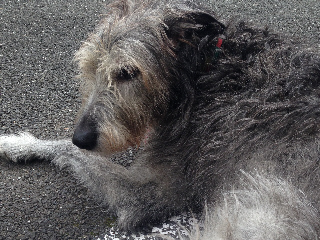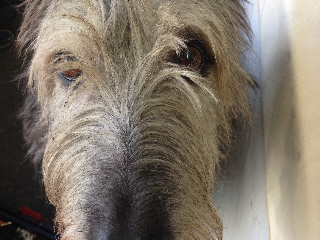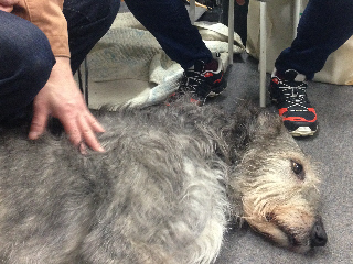 超大型犬のアイリッシュウルフハウンドは、人間の年齢で言うと100歳になる。