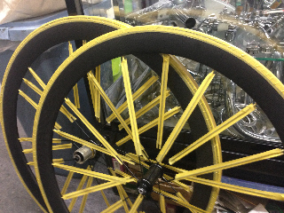 TOEIのフレームかリペイントから戻ってきました。最新のピスト用カーボンホイールは記録を狙えるクオリティです。