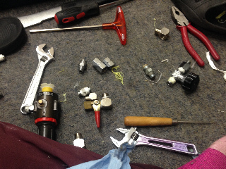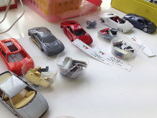 モデルカーモードに切り替えていく準備です、まずは、自転車のパーツ類の整理から。