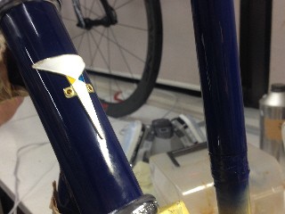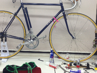 ジオットチネリを桜色にペイントします。おそろいのウェアでエロイカを走ります。