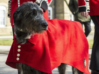 ウルフハウンドはバッキンガム宮殿の衛兵交代に先頭を行進する由緒ある犬種。