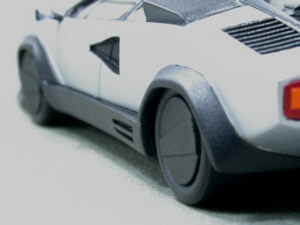 COUNTACH EVOLUZIONE 1987 発表直前のフェラーリF−40の対抗馬(牛)として、計画され試作に終わったスーパー・カウンタック。 アルミとカーボンの複合素材の贅沢ボディにスペースフレームの超軽量車体は、なんと980kg。 パワーは490馬力(牛力)、最高速は330km/hを記録。
