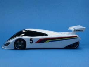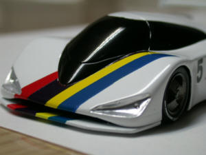 フォーミュラー1のシャーシに空力特性の流曲面のボディを乗せて・・・。