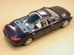 607のホイールベースを延ばし、キャビン後半をコンヴァーティブルにしたリムジン。 「大統領専用車」もしくは「要人のパレードカー」といった風情で、607のイメージアップするコンセプトカー。 内装表皮材にはエルメスが協力した。