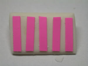 均等に収縮するシリコンの特性と温度管理で収縮を調整できる樹脂で全長を5ミリ縮めます。