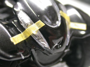 ![]() タイヤホイールをエポキシ接着剤で固定 |