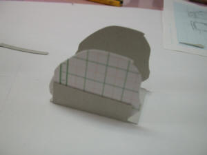 ![]() トレースして型紙を作ります 図面に重ねて針で刺していくと簡単に写せます |